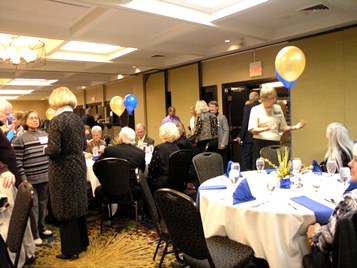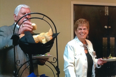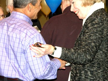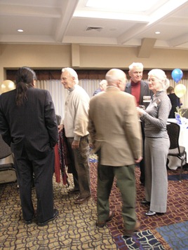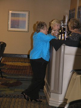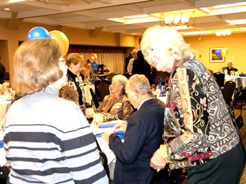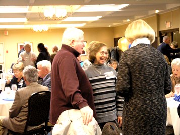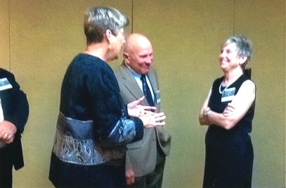 Carolyn Beck Casey talking to Dick and Beverly Kiehl who came from California. |