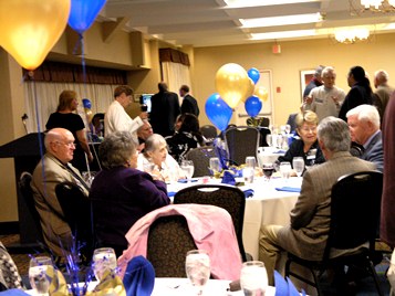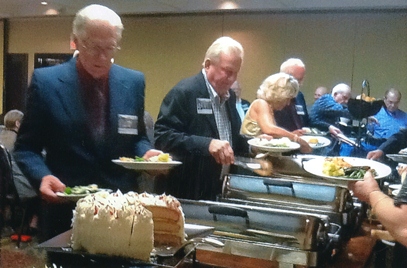 At the Reunion Buffet Left side is Dale Oyer and right front is Bob Brewer and wife Lavrette (Lolly). Behind Bob is John Joe and Virginia Reyes. Virginia is in front of John Joe then Barbara Hinshaw Goodwin. |