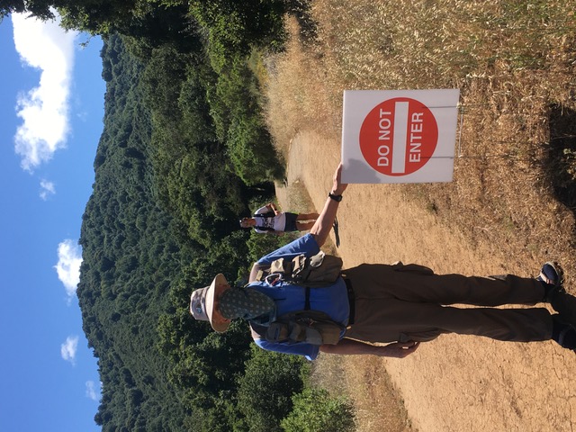 Hiking in the time of COVID-19. (One-Way Trails. That’s Fred behind the mask)