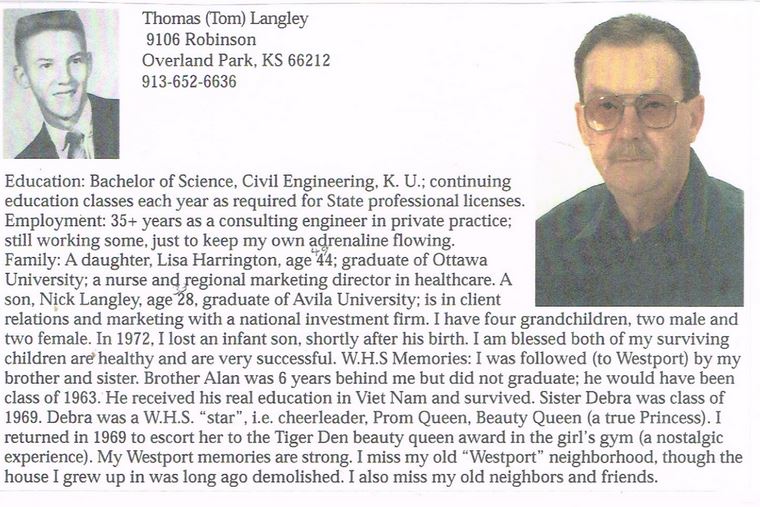 after I remember my last day at Westport in 1957 I was late leaving the gym and walked the deserted halls for the last time. I thought about the first time I walked these same halls in the 8th grade and how out of place and frightened I felt. Now it was home and I hated to leave. I had friends, felt accepted and part of a family. I had grown up here and had experienced my worst and best times while attending Westport. When I walked out that day, I was leaving childhood and entering adulthood.